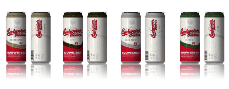 Дизайн содержит традиционные отличительные особенности, по которым каждый покупатель узнает продукт: логотип, красно-белый цветовой код, алюминиевую фольгу и эмблему города Ческе-Будеевице, в котором некогда родился бренд.