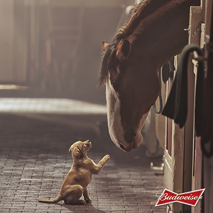 Пивной бренд Budweiser и рекламное агентство Anomaly представили первый ролик для Super Bowl. Его героем снова стала лошадь породы клайдсдейл. На этот раз тяжеловоз подружился с трогательным щенком с соседнего питомника. Друзья не смогли расстаться, даже когда за собакой приехал ее хозяин. Реклама «Щенячья любовь» уже собрала 8,5 млн просмотров на YouTube.