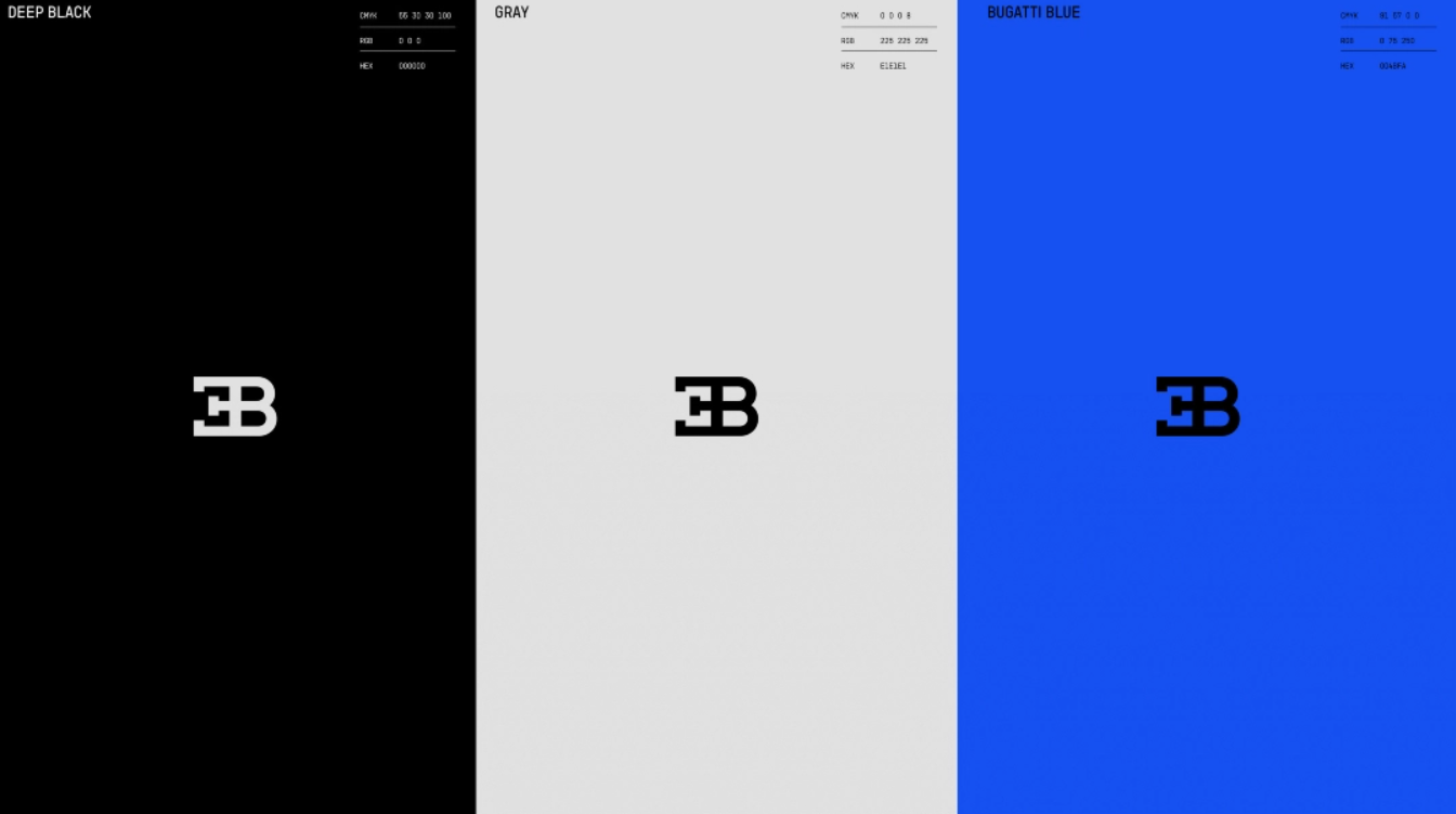На логотипе изображены инициалы основателя бренда Этторе Бугатти. Кроме того, на нём представлен новый цвет Bugatti Blue.