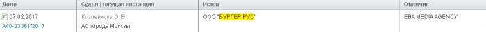 «Бургер Кинг» попросил взыскать с ответчика 1 000 000 рублей.