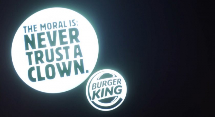 В конце фильма, прямо перед титрами, пришедшие на сеанс зрители Гамбурга увидели надпись «Мораль: никогда не доверяйте клоунам», к которой через несколько секунд присоединился логотип «Бургер Кинга». Шутка была отлично воспринята аудиторией, а также снова подогрела интерес к неустанному соперничеству двух брендов.