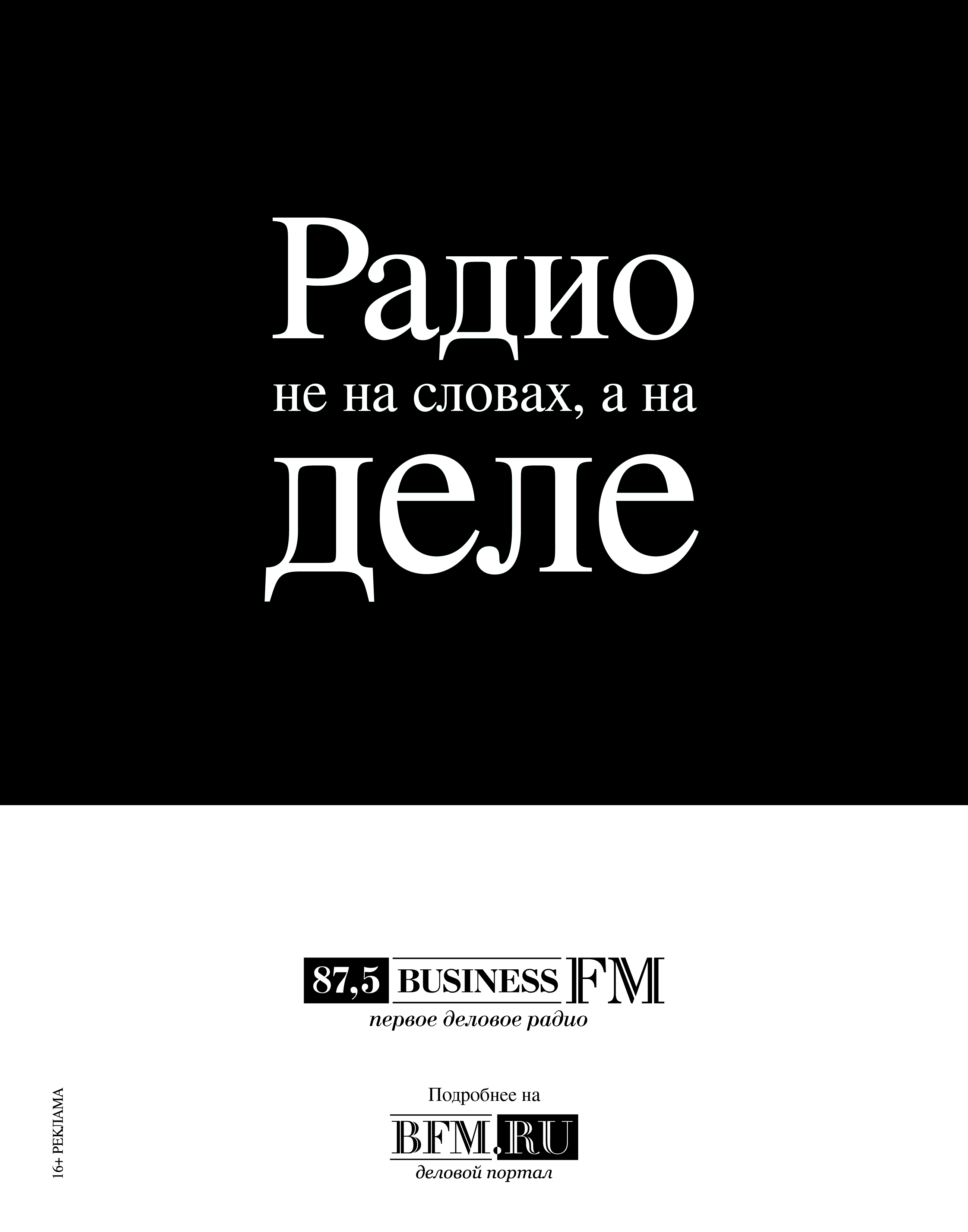 «Business FM – это, прежде всего, инструмент, помогающий деловым людям принять верное решение. Лаконичность без ущерба полноте изложения, актуальность в контексте происходящих глобальных процессов и компетентность без занудства – вот те столпы нашей информационной политики, позволяющие твердо заявить, что Business FM – «Радио не на словах, а на деле». Выбранная концепция, на наш взгляд, в полной мере соответствует текущему позиционированию радиостанции и отвечает тому имиджу, который мы сформировали за 6 лет работы», - Михаил Бергер, генеральный директор ГК «РУМЕДИА».