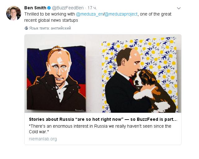 В BuzzFeed сообщили, что заинтересованы подобным сотрудничеством, так как новости о России интересны за рубежом, однако доступных материалов не так много. «Очень рад работать с @meduza_en/@meduzaproject, одним из лучших мировых новостных стартапов последнего времени», — написал в своем Twitter Бен Смит, главный редактор Buzzfeed.