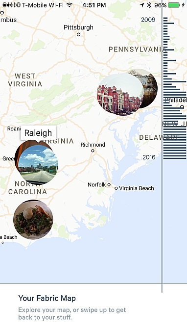 Приложение Fabric (доступно в магазине App Store) создаёт компиляцию из важных событий в жизни пользователя, агрегируя фотографии из Facebook, Instagram и непосредственно фотогалереи смартфона. Затем оно дополняет снимки данными по геолокации - таким образом у фото появляется контекст, где и при каких обстоятельствах они были сделаны.