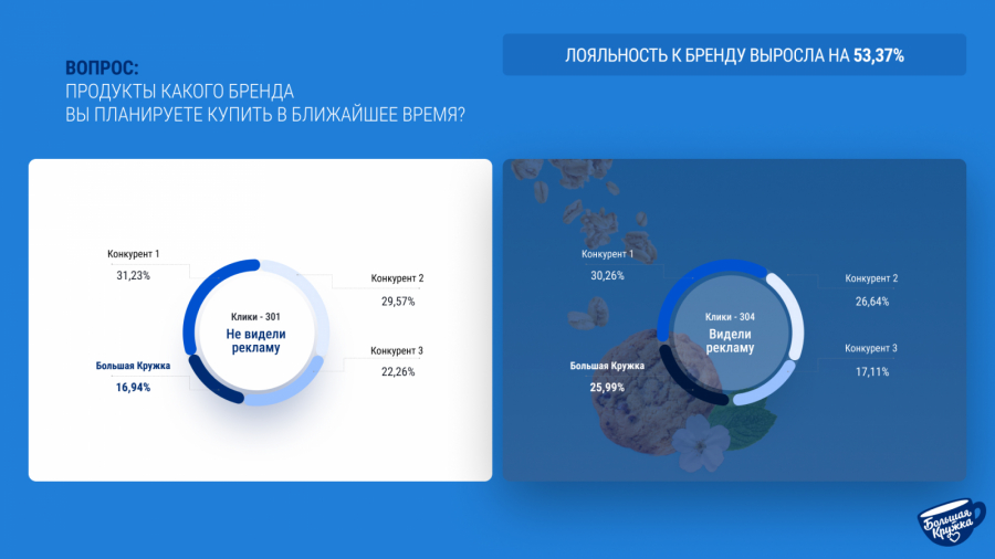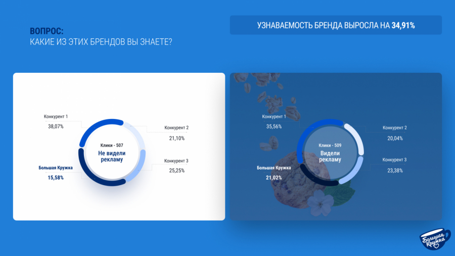 Результаты опроса показали, что узнаваемость бренда выросла на 34,91%. Это свидетельствует о том, что использованные рекламные форматы привлекли внимание аудитории и способствовали запоминаемости продукции.
