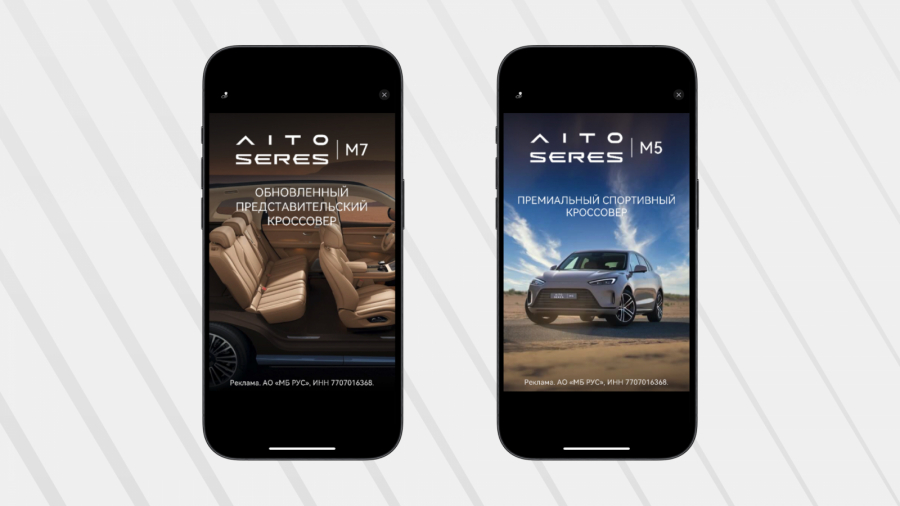 In-app форматы помогают бороться с «баннерной слепотой», поскольку все рекламные креативы размещаются в формате out-stream. Кроме того, для продвижения AITO SERES использовались Fullscreen-баннеры, которые занимают весь экран пользователя и обеспечивают высокую видимость рекламы.