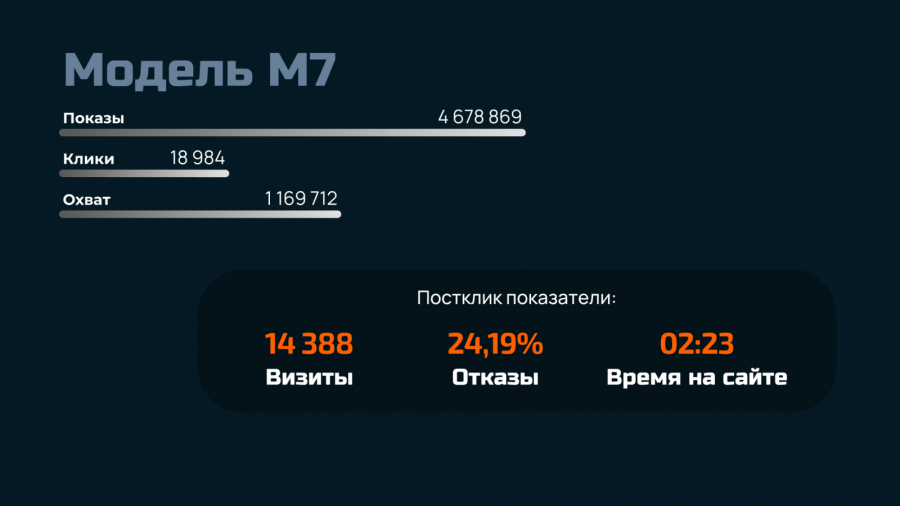 Постклик-показатели креатива по продвижению модели М7: