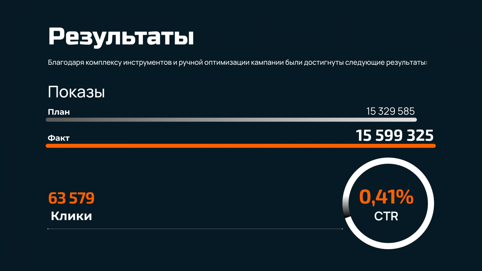 - 15,6 млн показов обеспечили масштабный охват среди релевантной аудитории;