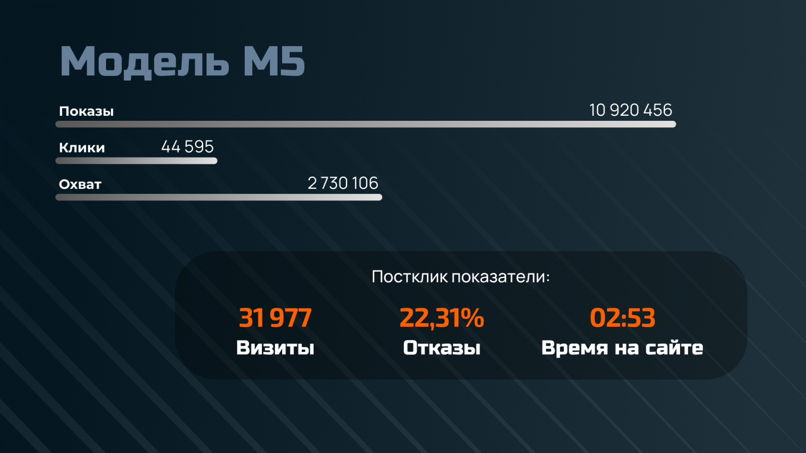 Постклик-показатели креатива по продвижению модели М5: