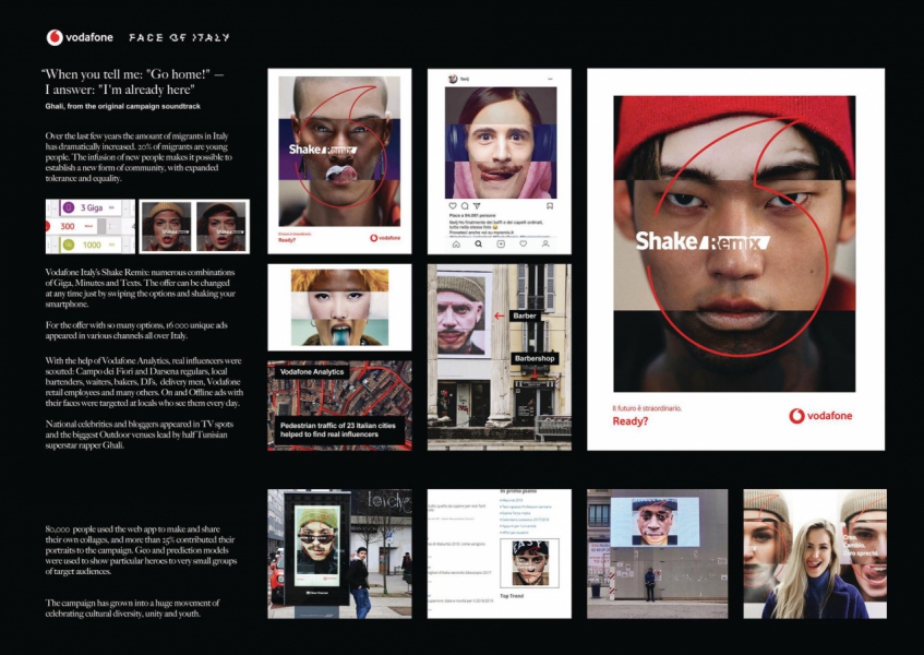 Кампания в поддержку тарифа Shake Remix от Vodafone и одновременно — в поддержку толерантности. Проект, как и сам продукт, нацелен на молодую аудиторию. По последним данным, 20% иммигрантов в Италии — молодежь. Тариф позволяет подбирать нужное количество минут, SMS и трафика, а также менять настройки в любое время — для этого достаточно «посвайпить» и встряхнуть смартфон.