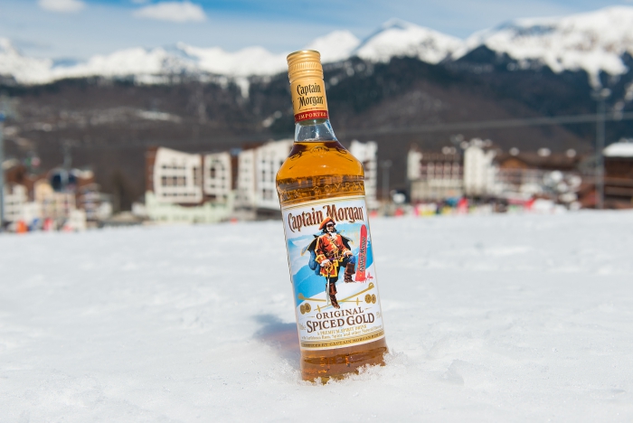 Компания Diageo обновила дизайн упаковки рома Captain Morgan специально к карнавалу Boogel Woogel, который проходит среди снежных вершин Сочи. На лимитированных этикетках Капитан Морган стал сноубордистом.