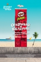 При разглядывании рекламного носителя с разных углов обзора вижуалы динамично сменяют друг друга, а основной элемент (банка чипсов Pringles) остается неизменным — этот эффект лентикуляра впечатляет и привлекает повышенное внимание аудитории. Данный формат в отличие, например, от экстендеров с выносными элементами на улицах города используется крайне редко.