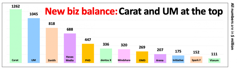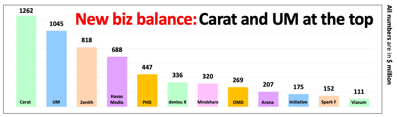 Французская консалтинговая компания Recma выпустила глобальный рейтинг агентств New biz balance 2019. В нем агентства ранжированы по сумме новых контрактов за год. В рейтинге также учитываются потери агентством клиентов. Их удержание не входит в общий подсчет.