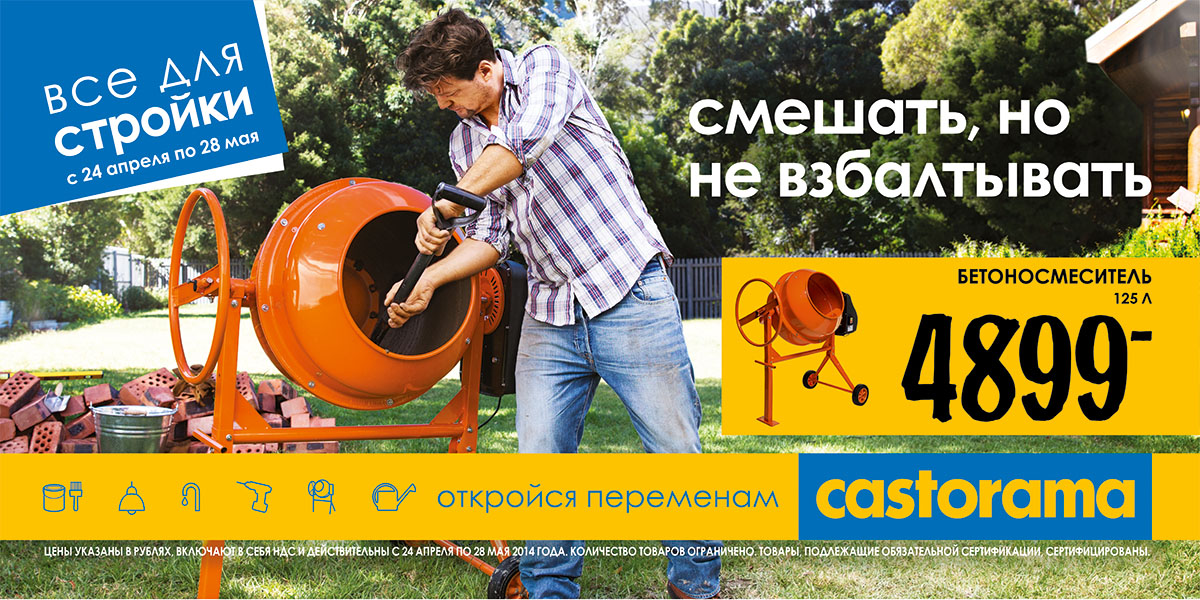 Сеть гипермаркетов Castorama запустила масштабную рекламную кампанию в наружной рекламе и на ТВ. Разработку креативной концепции и съемку роликов осуществило агентство McCann Moscow. ?
