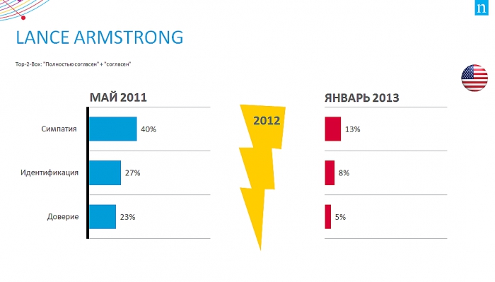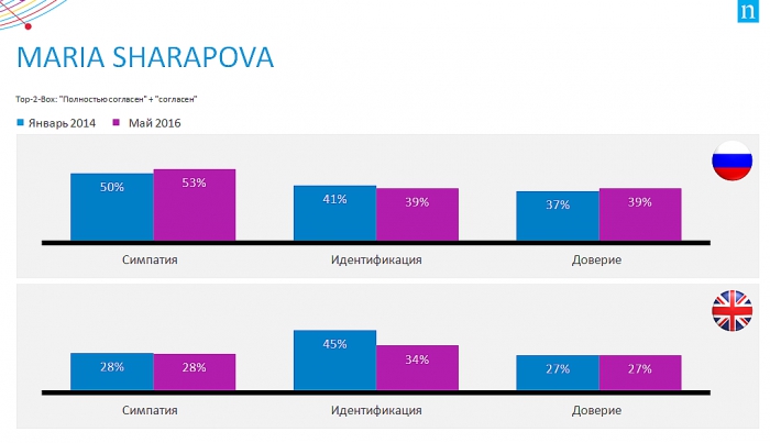 Допинговые скандалы могут по-разному влиять на имиджевые KPI мировых звезд спорта. Интересно проанализировать динамику изменения отношения потребителей к Марии Шараповой в сравнении с другими глобальными звездами в контексте отстранения от соревнований по причине допинга. Благодаря эффективной и своевременной реакции Марии и ее команды на форс-мажорную ситуацию индексы симпатии, идентификации и доверия изменились в сторону роста.