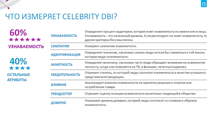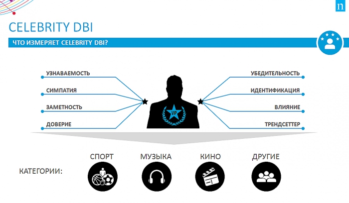 На западном рынке уже давно существуют эффективные инструменты по выбору спортсмена в качестве амбассадора бренда. Одним из таких является Индекс популярности Celebrity DBI, обеспечивающий маркетологов системным подходом и включающий в себя узнаваемость, симпатию и другие атрибуты знаменитостей, которые влияют на покупку, поведение и образ жизни потребителей.