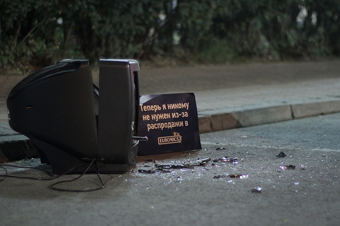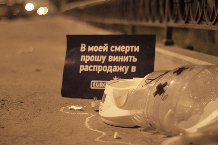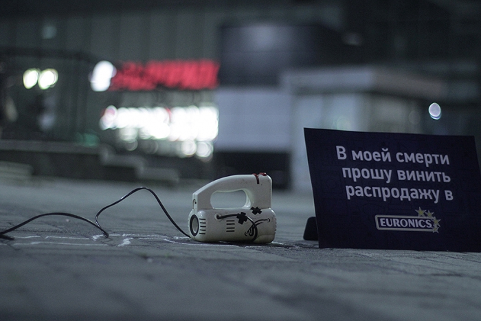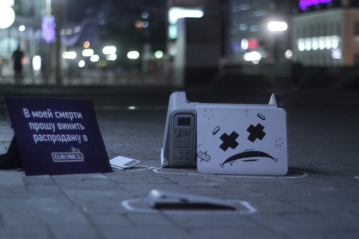 РА «Космос» провело партизанскую акцию для гипермаркета электроники Euronics. Для анонсирования намечающейся распродажи креаторы использовали старую технику, которая ночью была расставлена по всему Екатеринбургу. Утром жители могли наблюдать многочисленные сцены самоубийств уже никому не нужной старой техники, не выдержавшей большие скидки в Euronics. Более 50 единиц техники стали объектами наружной рекламы по всему городу.
