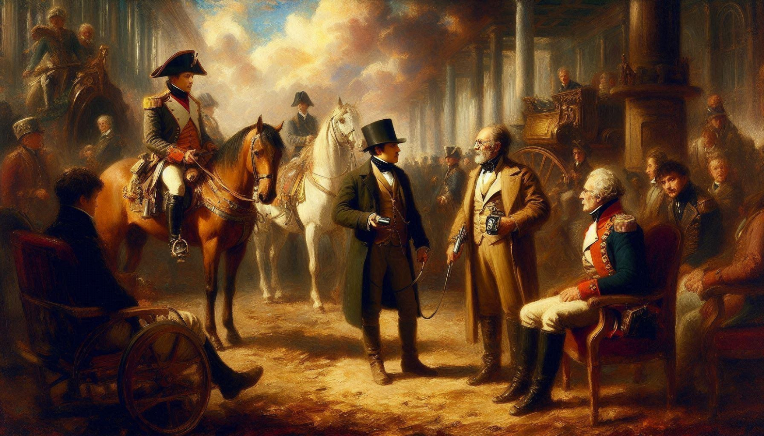 «О великий Наполеон, повелитель Франции и грозный завоеватель! Я, странник из будущего, предстаю пред тобой, чтобы поведать о мире, что ждет тебя впереди. Твоя слава и деяния эхом отзываются сквозь века, и я преклоняюсь перед твоим величием.