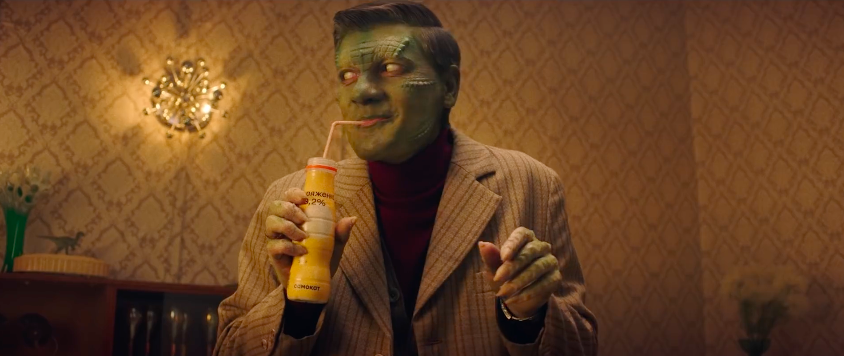 В видео нативно интегрировано приложение по доставке продуктов «Самокат». Курьер бренда привозит заказ на семейное торжество, а напиток собственной торговой марки «Самоката» затем пьет Александр Гудков, сыгравший родственника-рептилоида.