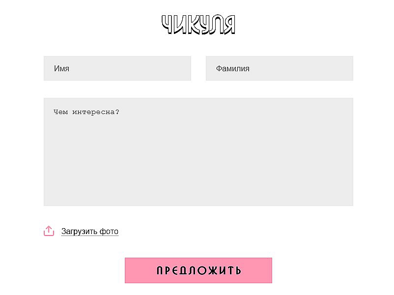 Конкуренцию им может составить любой желающий, достаточно вписать имя чикули, загрузить ее фото и рассказать, чем она может быть интересна для Юрия Дудя (в контексте успешного интервью, конечно).