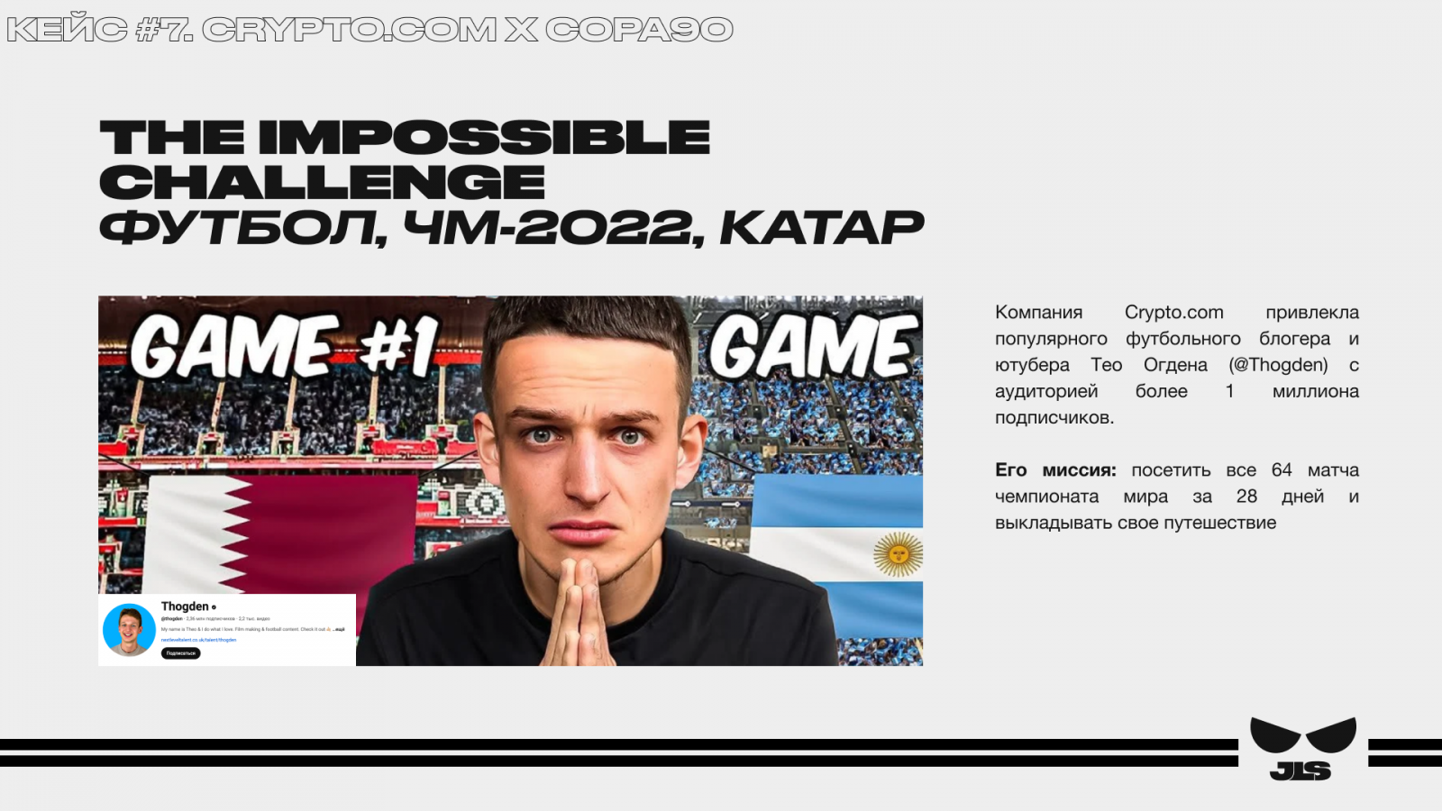 От пульса к контенту, заставляющего биться сердце чаще. Спортивный контент вызывает самую высокую вовлечённость и запоминаемость. В спорте эмоции не симулируются — они происходят здесь и сейчас. А бренды стараются усилить пользовательский опыт с помощью гибридных кампаний, переходящих из онлайна в офлайн. Тремя столпами маркетинговых активаций по-прежнему остаются контент, геймификация и CRM. Вспомним, как бренды боролись за внимание на прошлом Чемпионате мира (ЧМ-2022 в Катаре) и собрали кейсы для вдохновения в одну подборку: