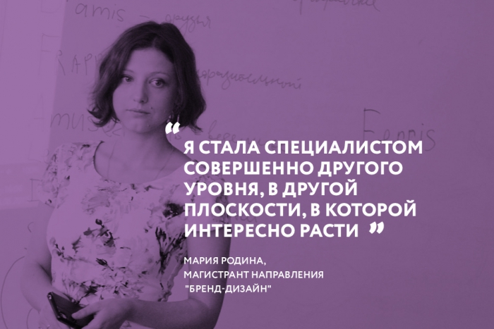 Сегодня о своих успехах в Высшей Школе Брендинга рассказала магистрант направления «Бренд - дизайн» Мария Родина.