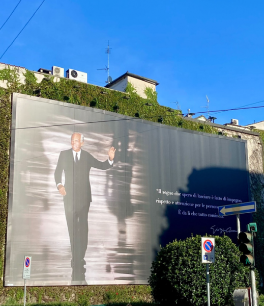 Сегодняшний Милан, как любой мегаполис, покрыт билбордами с фэшн-рекламой — особенно в сезоны недель мод. Но так было не всегда: до середины 1980-х билборды считались чересчур «близкими к народу», от которого высокая мода пряталась в серьезной прессе. А в 1984 году на перекрестке миланских улиц Бролетто и Делль’Орсо появился билборд с рекламой суббренда Emporio Armani: четырьмя мужчинами с газетами — в знаменитых облегченных костюмах.