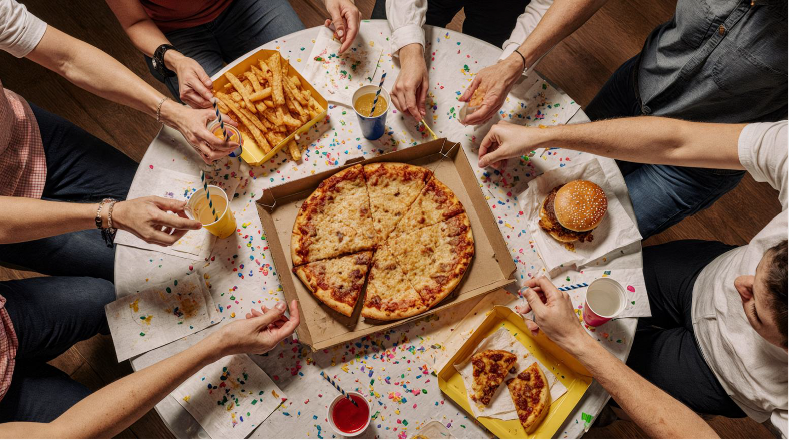 Оливье выглядел так, будто ингредиенты рубили топором, шашлыки превратились в бесформенные куски, а онигири в круглые шарики из риса. Уйма времени ушла на попытки объяснить, что такое римская пицца. ИИ упорно рисовал круглую классическую пиццу, которую ему в бесконечных количествах скармливают дизайнеры со всех уголков мира. От нейросетей мы смогли добиться только прямоугольной коробки, а саму пиццу сажали на ретуши.