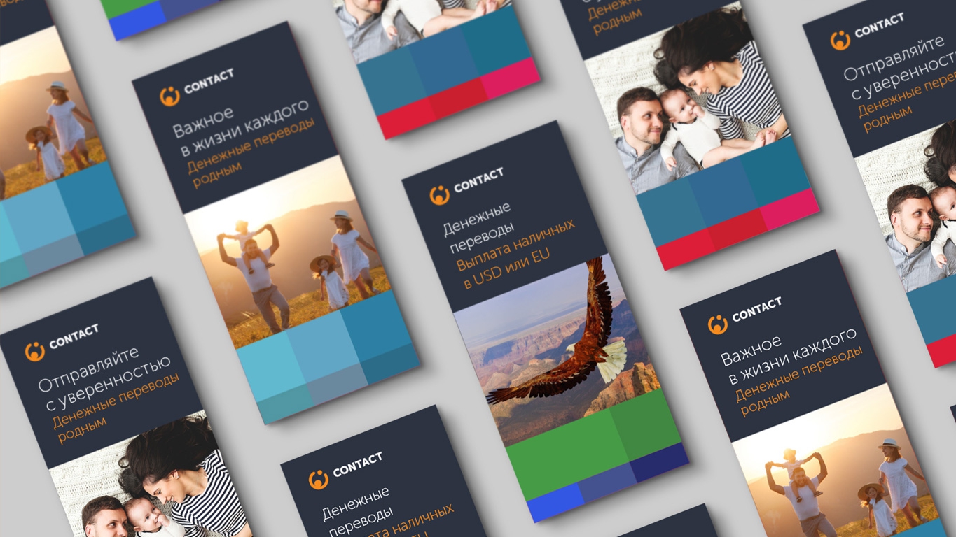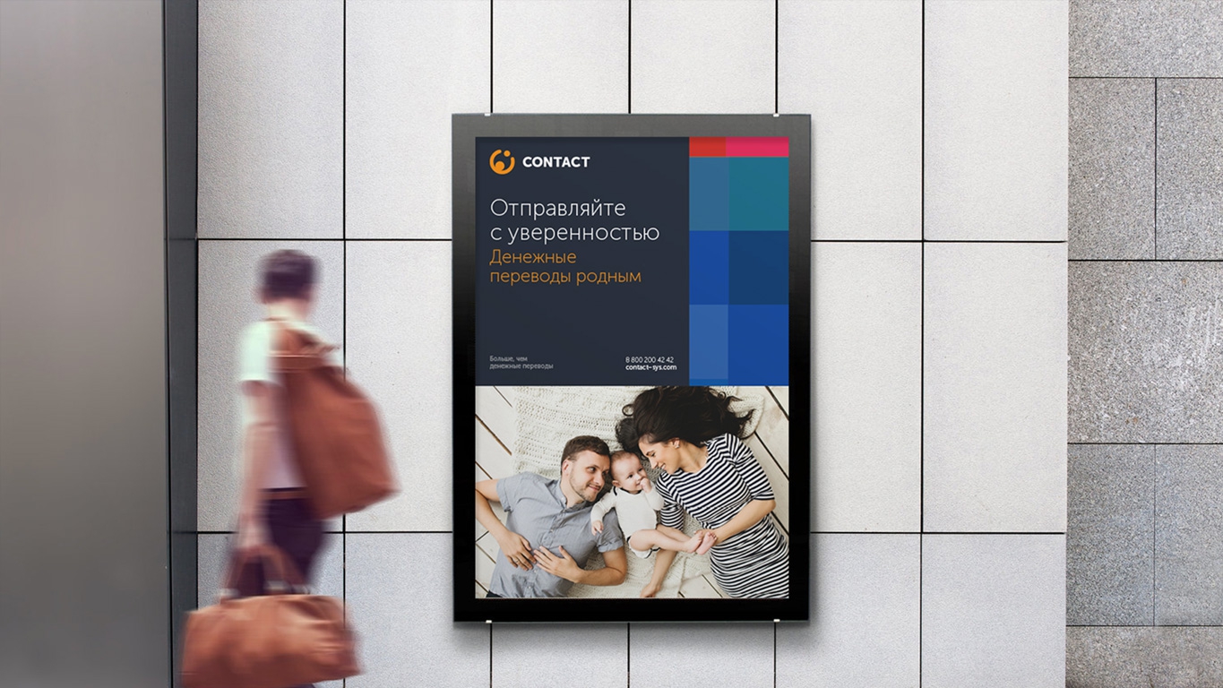 Задача для креативного агентства BULVAR была поставлена таким образом: представить новый логотип, чтобы при беглом взгляде на него можно было почувствовать все: дружелюбность, надежность и заботу, с которой CONTACT помогает быть ближе к родным даже на расстоянии.