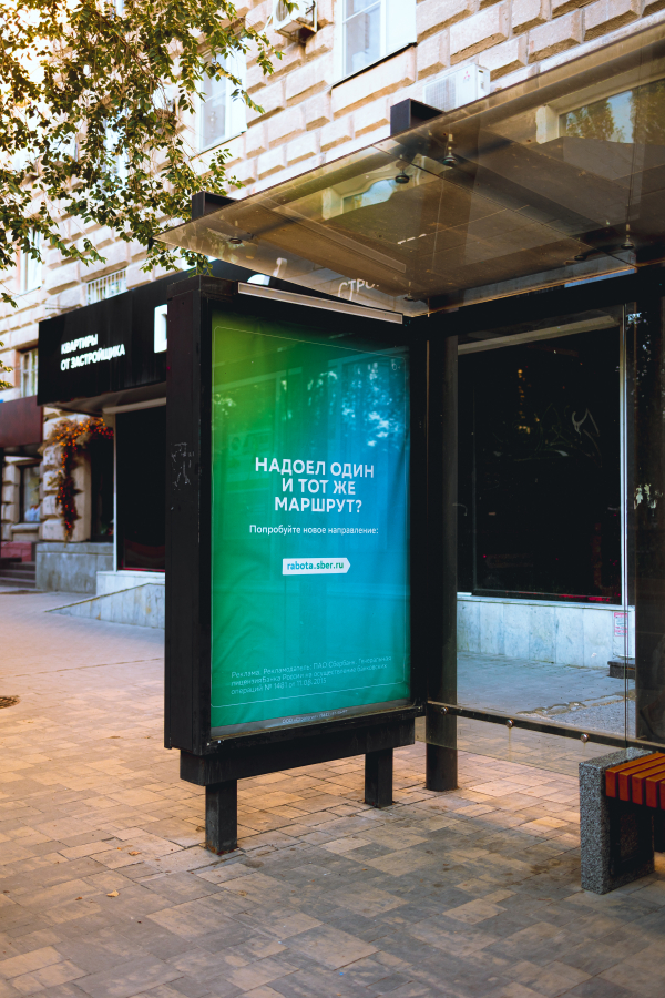 Плакаты разместили на вокзале, остановках, в офисах банка, кофейнях и даже в баре. Все вопросы для карьерной рефлексии отталкиваются от места, где кампания ловит человека, и как будто вырывает его из привычного бега по делам. На вокзале его поджидает плакат «Не можете найти свой путь?», в столовой бизнес-центра — «Не ощущаете профессионального голода?», электрощит уточняет, чувствует ли человек нехватку энергии, а банкомат — отражаются ли усилия на зарплате.