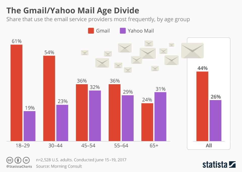 Впрочем, потенциальные клиенты Oath сомневаются в возможности компании показывать рекламу с тонким таргетингом. Даже если система просканирует 200 млн почтовых ящиков, что-то специфическое обнаружится у ничтожной части пользователей. Сейчас Yahoo Mail заметно уступает конкурирующему Gmail — сервис Google лидирует во всех возрастных категориях кроме 65+.