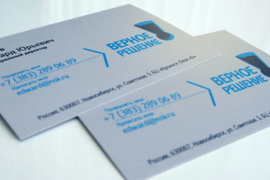 Перед агентством стояла задача используя смысловую нагрузку названия сделать фирменный стиль компании «Верное решение» адаптивным к различным каналам и сообщениям.