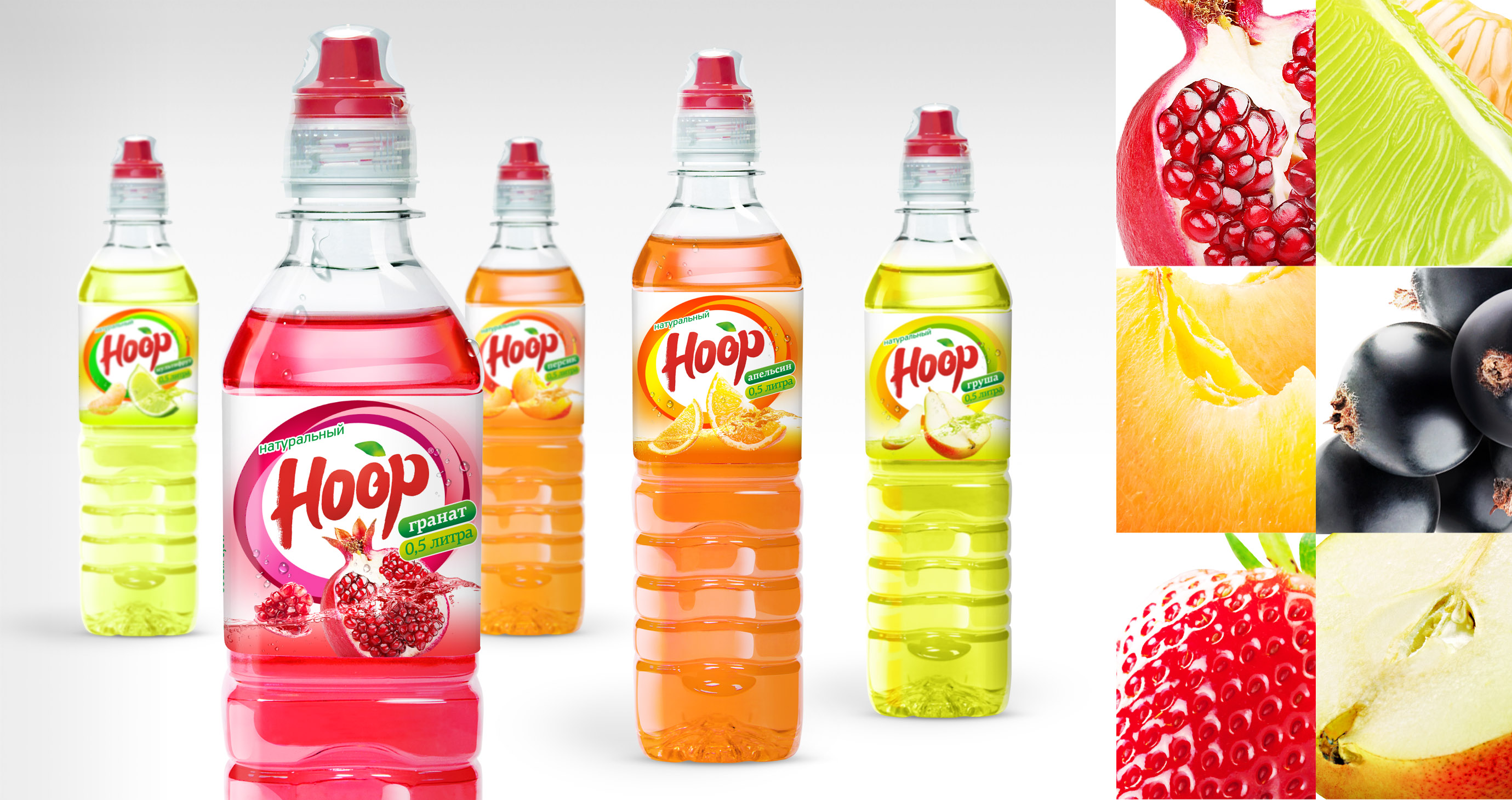 По словам креативного директора Clёver Branding Бенжамина Бенимана, дизайн-концепция упаковки должна была соответствовать ценностям марки Hoop, дифференцировать две линейки между собой, доносить до целевой аудитории основные свойства бренда - пользу для здоровья и ориентированность на потребителей, ведущих активный образ жизни. Эта идея отражается в этикетке с помощью элементов, передающих динамику: насыщенности сокового всплеска, активных шрифтов, ярких цветов. Вместе с тем бренд-блок Hoop не претерпел изменений, что обеспечивает высокую узнаваемость и преемственность марки.