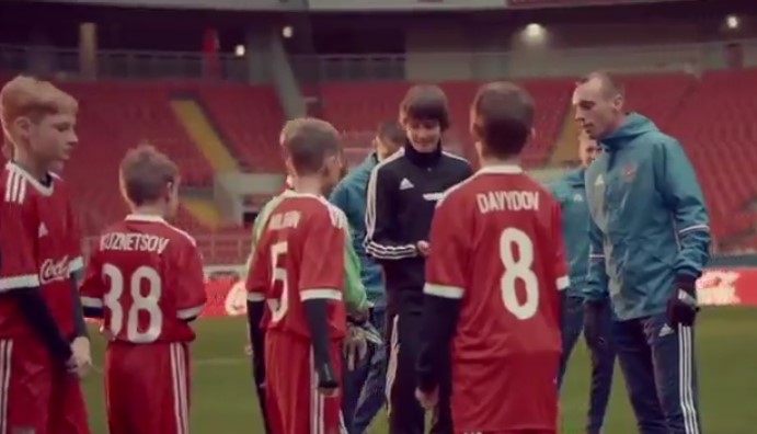 Официальный партнер Национальной сборной России по футболу, а также эксклюзивный организатор Тура Кубка Чемпионата мира по футболу FIFA Coca-Cola сделала юным футболистам сюрприз. Ребята пришли на свою обычную тренировку, но вместо отработки тактики и техники владения мячом их посадили в автобус и отвезли на стадион «Спартак», где их ждали игроки национальной сборной, с которыми у них состоялась совместная тренировка прямо на поле. А в конце тренировки ребят ожидал самый большой подарок от Coca-Cola: встреча с Кубком Чемпионата мира по футболу.