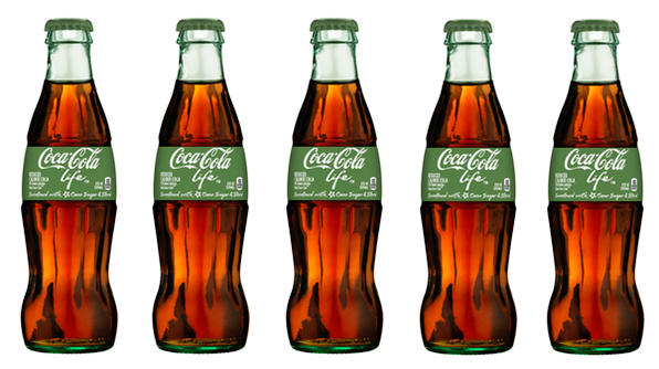 Coca-Cola Life пониженной калорийности и в упаковке зеленого цвета появилась на американском рынке. В качестве подсластителя производитель использует тростниковый сахар и стевию, что позволяет на треть снизить энергетическую ценность напитка. В стеклянной бутылке объемом 240 мл содержится 60 калорий, тогда как обычная кола содержит 90–100.
