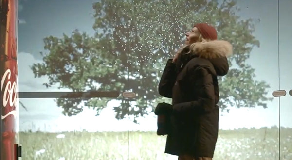 Компания Coca-Cola реализовала необычный рекламный проект на одной из остановок в шведском городе Уппсала, крупнейшем образовательном центре Скандинавии. Концепцией проекта, получившего название «Аппарат счастья», стало напоминание людям о лете в холодные зимние дни.