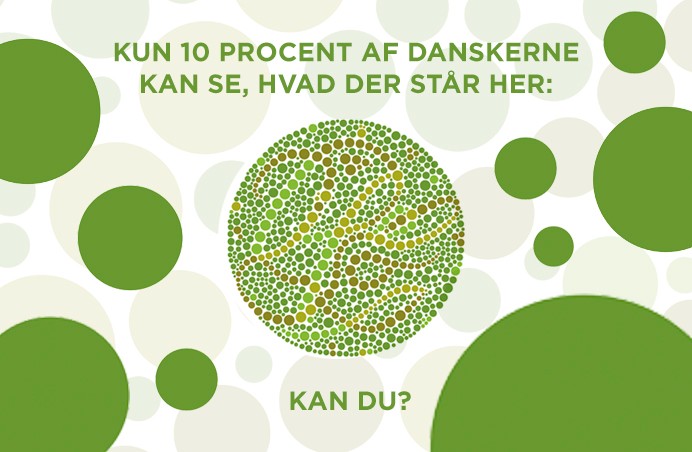 Основное изображение скрыто за коричнево-зеленым рисунком, однако люди, не различающие некоторые цвета, могут увидеть в нем слово "Life" ("Жизнь"). Соответствующая реклама появилась в датских СМИ, социальных медиа, уличных стендах и т.д. Согласно опросу местного агентства, необычное изображение смогли увидеть 17% респондентов в возрасте от 10 до 60 лет.