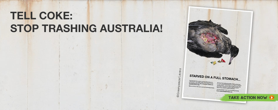 Активисты Greenpeace развернули кампанию против крупнейшего производителя газированных напитков Coca-Cola, призванную поддержать австралийскую систему утилизации пластиковых отходов. В интернете появился видеоролик-пародия на рекламу Coca-Cola, в котором компания обвиняется в смерти множества птиц из-за загрязнения пляжей пластиковыми бутылками.