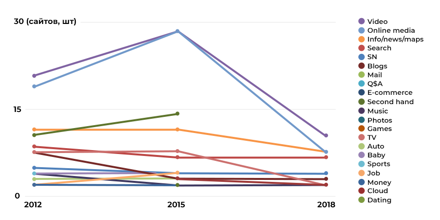 Также интересно, что многие узконаправленные сайты просто исчезли с радаров пользователей: например, никому не нужен отдельный фотохостинг, ведь фото теперь хранятся в аккаунтах соцсетей.