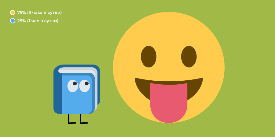 Поиск в интернете, домашнее задание — не более четверти времени, проведенного в интернете, то есть не более одного из четырех часов в день.
