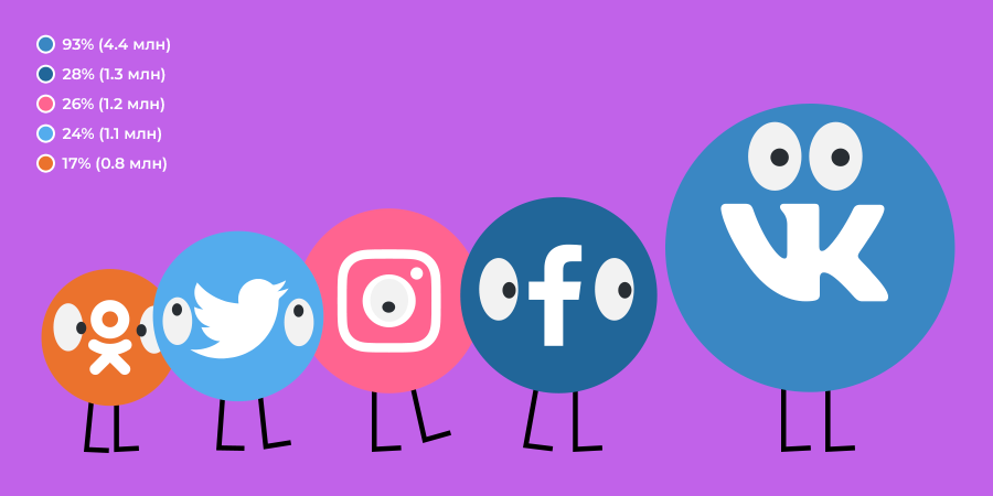 Как и следовало ожидать, главная соцсеть для современных девочек-подростков — «ВКонтакте», в ней присутствует 93% аудитории.