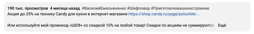 Именно поэтому блогеры, которые продвигали бытовую технику Candy и добавляли промокод на скидку на покупку продукции, сработали лучше. На протяжении всего ролика зрители буквально влюблялись в продукт — захотев его купить, соответственно.