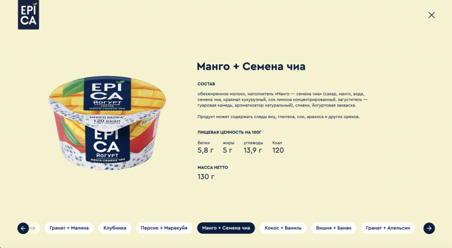 Решая коммуникационные задачи, сайт остается удобным инструментом, с помощью которого можно подробно изучить всю линейку йогуртов EPICA, познакомиться с ценностями команды и найти ближайшее место их продажи.