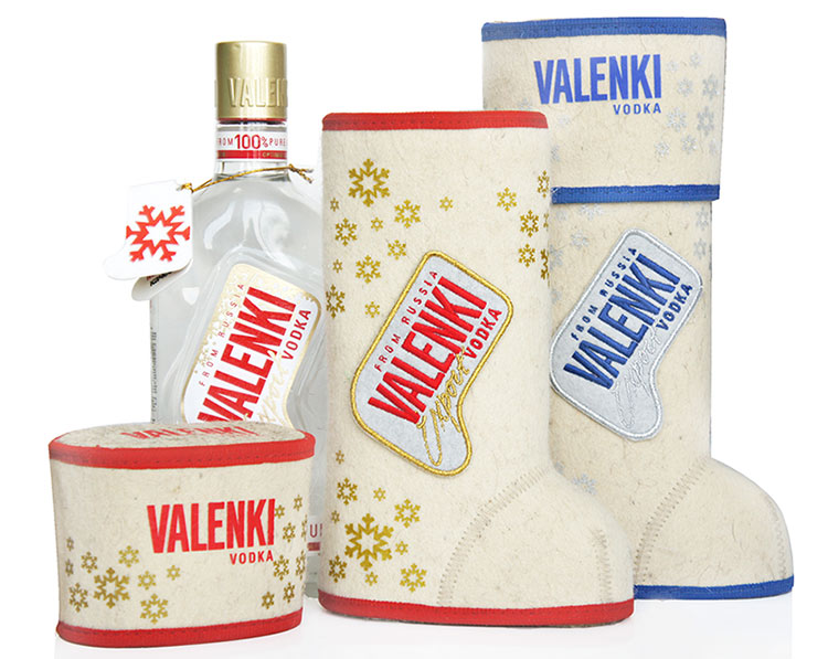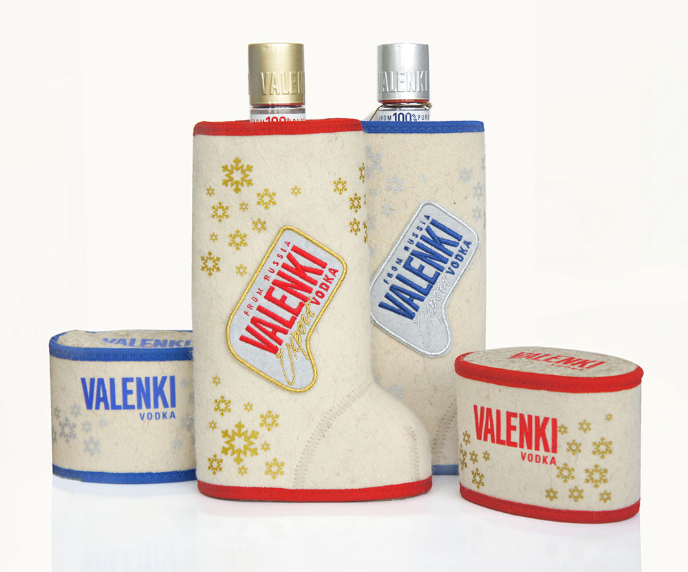 Креативная команда группы компаний «Даймонд» совместно с агентством BRIGHT развеяли стереотипы о твердости водочной упаковки и представили оригинальную упаковку в виде миниатюрного валенка для водочного бренда VALENKI.