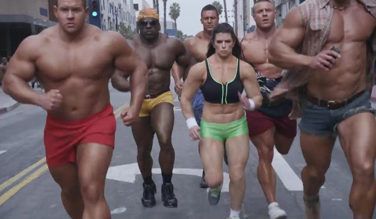 В рекламе бренда спрей-загара GoDaddy известная американская автогонщица и модель Даника Патрик превратилась в бодибилдера и вместе с мужчинами побежала за загаром.