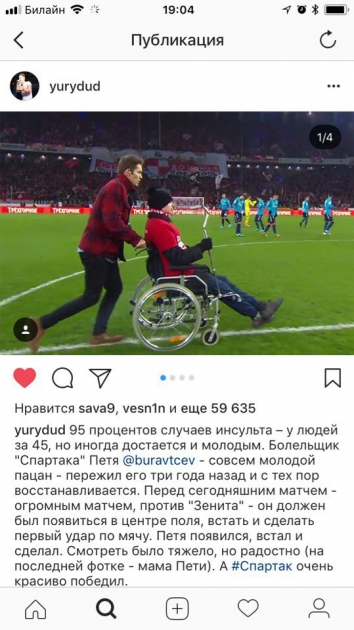 - Юрий Дудь, блогер и спортивный журналист, посвятил этому Instagram-пост, собравший более 60 000 лайков