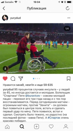 И главное — видео эмоционально анонсировало событие, которое должно было произойти в центре поля прямо перед матчем «Спартак» — «Зенит»: Петя встанет с коляски, несмотря на то, что после инсульта он был полностью обездвижен, и совершит символический удар по мячу, чтобы показать всем: восстановиться после инсульта возможно.