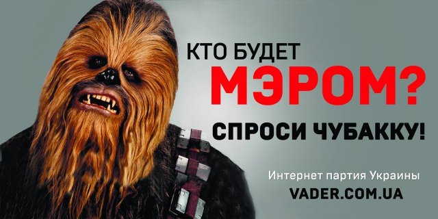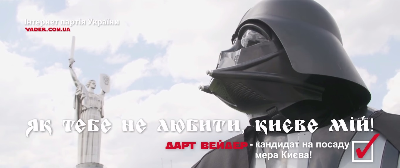 Предвыборная кампания Дарта Вейдера охватила наружную рекламу и интернет. Кандидат с человеческим лицом, гроза сепаратистов и джедаев выпустил несколько роликов - о любви к Киеву, о борьбе с мусором, о захвате Одессы. «Если бы каждый киевлянин любил свой город хотя бы на половину от моего, то он бы стал наполовину мной», - заявляет темный лорд.