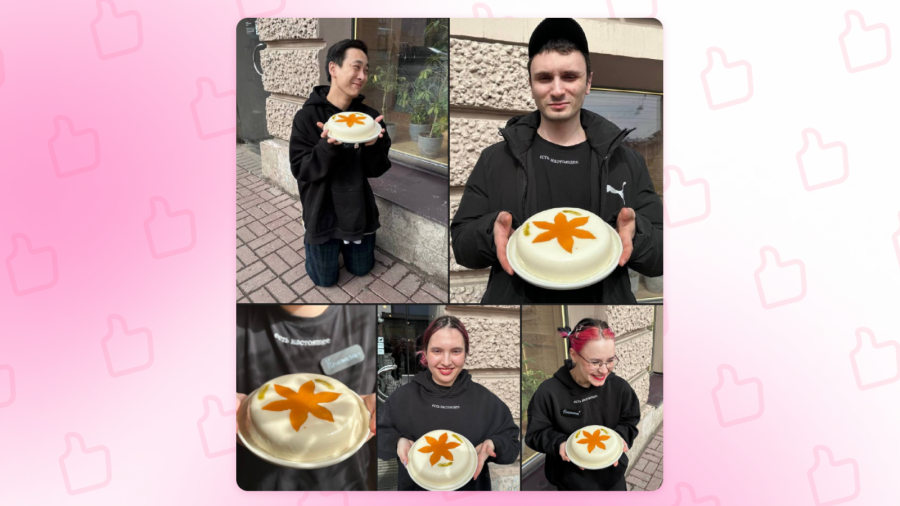 Ниже — пример более удачного контента с высоким вовлечением подписчиков. Работники заведения с UGC контентом, демонстрирующие искренние эмоции, признающиеся в любви к сладостям. Продукт так же в центре кадра, но считывается он уже по-другому.