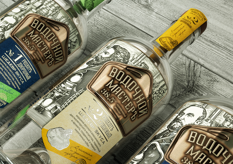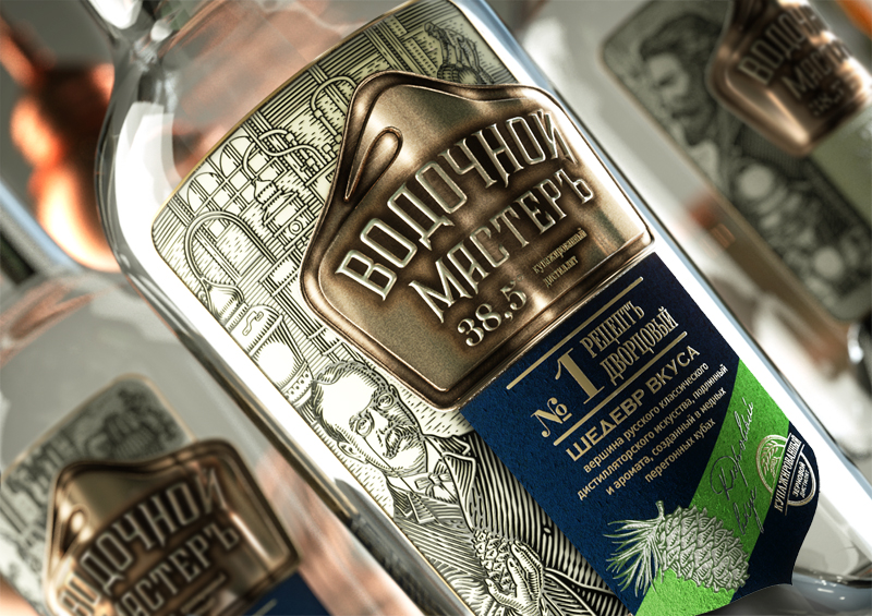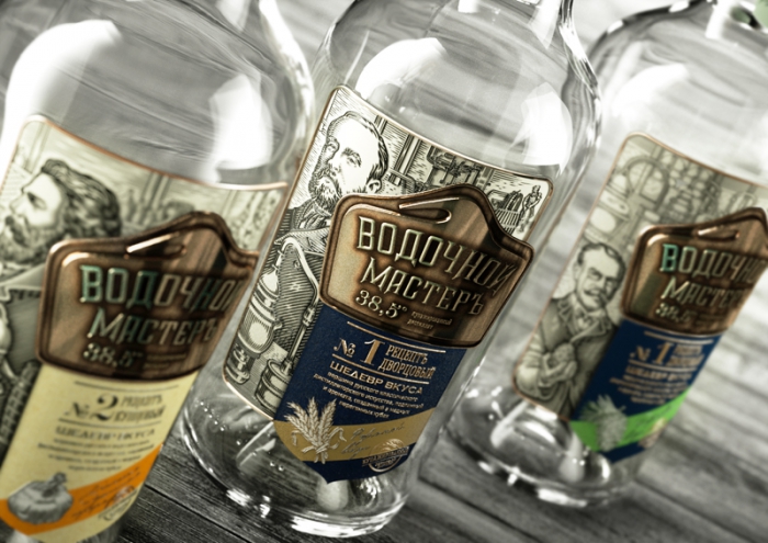 При разработке дизайна продукции «Водочной Мастеръ» перед командой, помимо акцента на производстве напитков, стояла еще одна задача – сохранить преемственность национальной «крепкоалкогольной» эстетике.